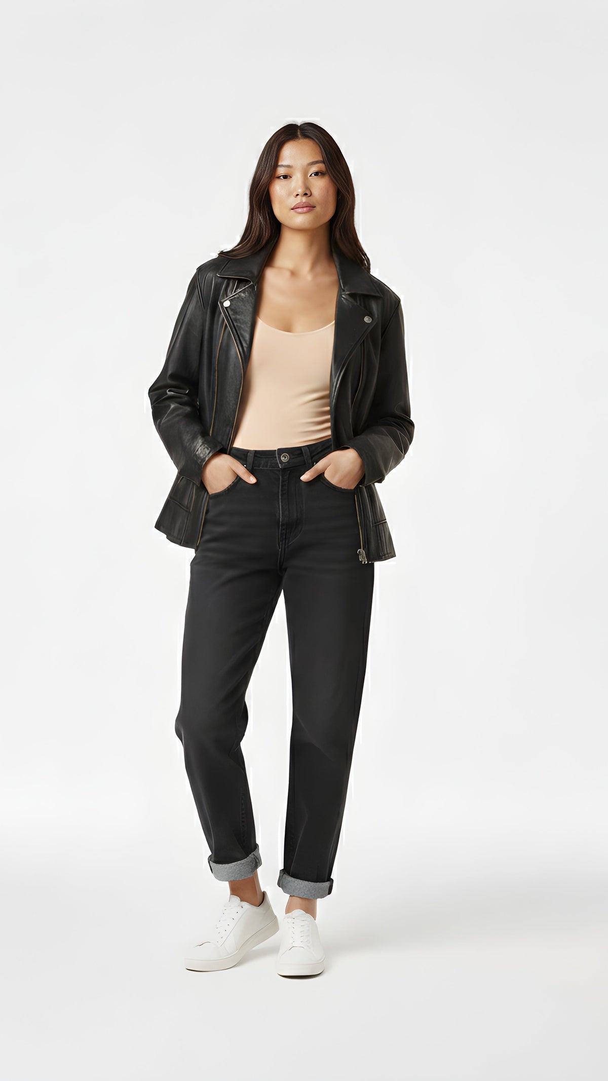 • Closure: Subtle hook-and-eye design